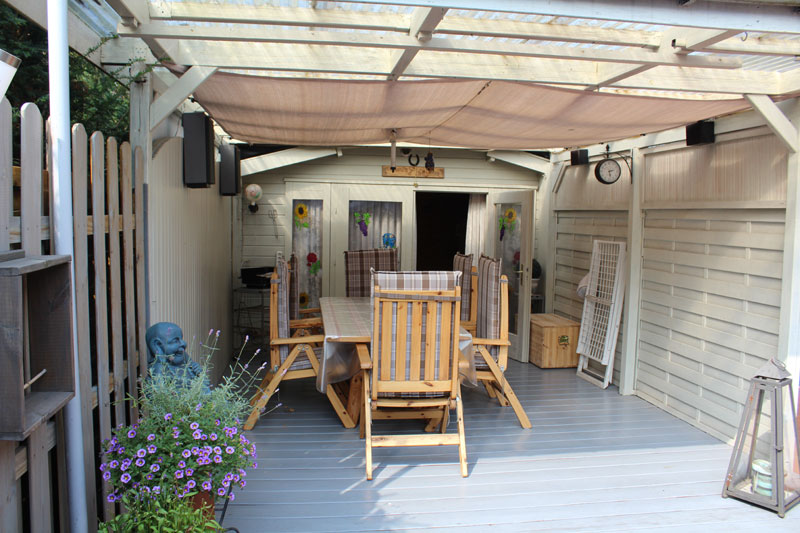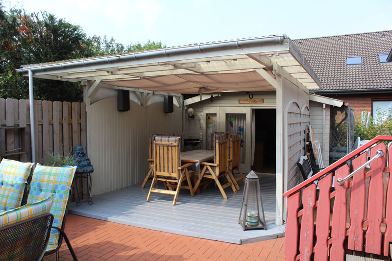 - Schließbarer Holzpavillon vorm Gartenhaus