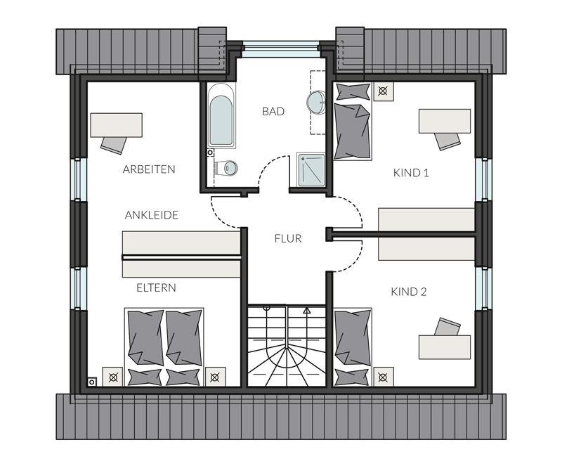 + Fußbodenheizung im Erd- und Dachgeschoss