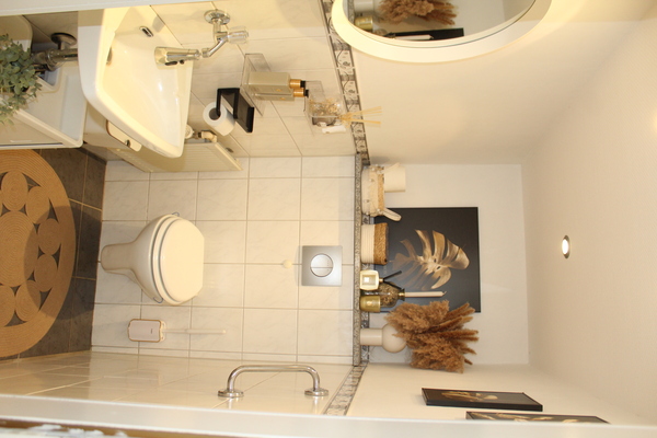 Im Dachgeschoss stehen vier weitere Zimmer und ein kleines WC zur Verfügung. Drei der Räume wurden 2023/2024 modernisiert und mit neuen Böden, frischen Anstrichen sowie zeitgemäßen Elektroinstallationen ausgestattet. Während das vierte Zimmer derzeit als Abstell- und Bügelraum dient und auf Ihre kreativen Einrichtungsideen wartet. Besonderen Wohnkomfort versprechen je ein Kaminofen im Erd- und im Dachgeschoss, die an kühleren Tagen eine behagliche Wärme ausstrahlen und eine einladende Atmosphäre schaffen.