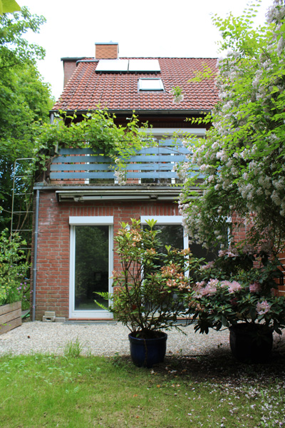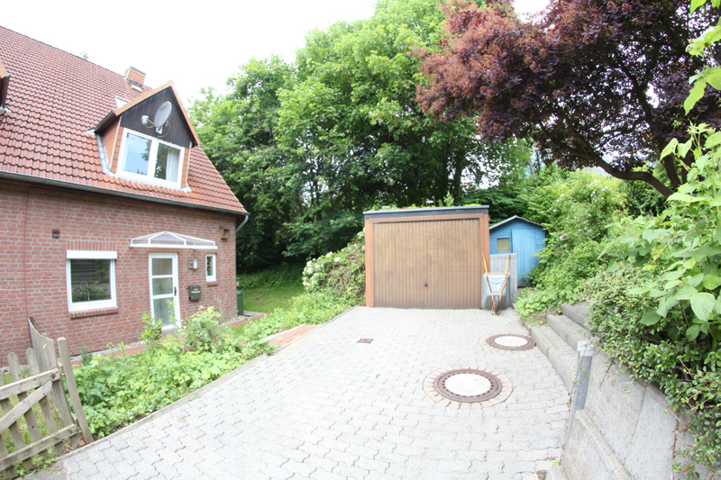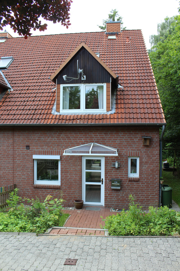 Verkauft werden soll eine Doppelhaushälfte in Kiel. Das Haus ist mit einem Vollkeller ausgestattet und verfügt zudem über drei weitere Geschosse. Gebaut wurde es 1990 in massiver Bauweise mit einem Satteldach. Auf der Hausvorderseite wurde zudem eine Satteldachgaube mit zwei Fenstern installiert. Auf der Hausrückseite befindet sich ein Balkon bzw. eine Dachterrasse, die sich auf dem Erdgeschoss befindet. Von der Dachterrasse hat man einen guten Blick auf die darunterliegende Terrasse und in den Garten. Die Terrasse und auch die Dachterrasse haben eine Südwest-Ausrichtung und sind geschützt angelegt. Auf der Dachterrasse wurde ein verzinktes Metallgeländer angebracht und die Außenseite des Geländers zusätzlich mit einer Holzverschalung beplankt. Auf dem Dach der Hausrückseite befindet sich auch noch eine Solaranlage, die die Warmwasseraufbereitung unterstützt. Versorgt wird das Haus über eine Gaszentralheizung von Vaillant, die 2008 erneuert wurde. Im kompletten Erd- und Dachgeschoss befindet sich eine Fußbodenheizung.