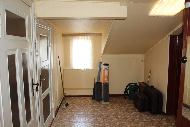 Im Erdgeschoss empfangen Sie ein zentraler Flur und eine Küche sowie drei weitere Zimmer: das geräumige Wohnzimmer und zwei weitere Räume, die individuell als Essbereich, Büro oder Gästezimmer genutzt werden können. Im Dachgeschoss verteilen sich ein Flur, ein Badezimmer sowie sieben weitere Räume unterschiedlicher Größe. Das vorhandene Badezimmer ist in die Jahre gekommen und verfügt über einen Waschplatz sowie eine Badewanne. Die Wärmeverteilung erfolgt weitgehend über klassische Röhrenradiatoren, und die Holzfenster sind überwiegend einfach verglast, während im Erdgeschoss vereinzelt bereits doppeltverglaste Fenster installiert wurden. Einige der Zimmer im Dachgeschoss sind aufgrund ihrer kompakten Abmessungen ideal als Gäste- oder Arbeitszimmer geeignet.