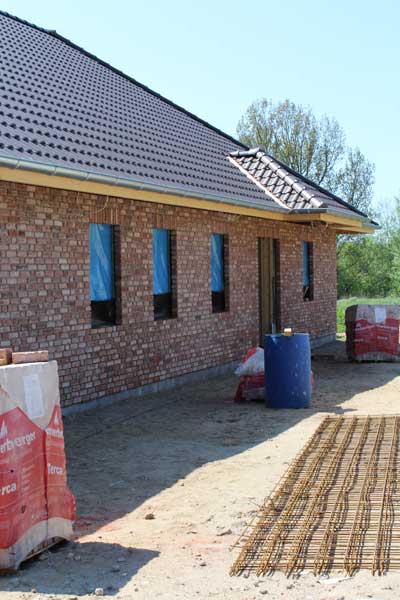 Gebaut werden soll ein Einfamilienhaus in höchster Qualität. Es handelt sich dabei um ein Holzständerbauwerk mit Verblender (Klinker). Das Haus ist mit dem RAL-Gütezeichen zertifiziert und die Bauelemente tragen das sogenannte Ü-Zeichen, als Symbol für besondere Qualität.