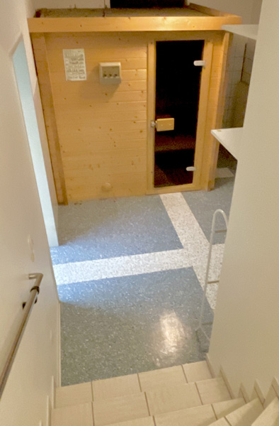 Die Treppe ins Kellergeschoss ist ebenfalls gefliest und beleuchtet. Hier sind neben einem großen Flur dann noch drei weitere Räume anzufinden. Dabei handelt es sich um einen Abstellraum, den Hauswirtschafts- und Technikraum sowie ein Hobbyraum. Eine neuwertige Sauna ist auf dem Flur anzufinden. Der Hobbyraum wird aktuell als Freizeit- und Wellnessraum genutzt. Als besonderes Highlight wurde hier auch noch eine Dusche installiert, so dass man nach dem Saunabad schnell die erforderliche Abkühlung genießen kann. Ein Handtuchheizköper steht ebenfalls zur Verfügung. Anzumerken ist auch noch, dass die Kellerräume teilweise beheizt sind und der Keller eine wohnähnliche sowie angenehme Deckenhöhe von rund 2,50 aufweist. Zudem sind im Abstell- und Hobbykeller jeweils noch ein Fenster anzufinden.