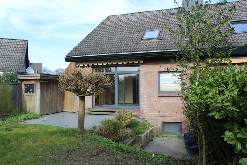 Verkauft werden soll eine Doppelhaushälfte in Dänischenhagen. Die Doppelhaushälfte befindet sich auf einem ca. 350 m² großen Grundstück und wurde in 1,5 geschossiger Bauweise errichtet. Das massiv gebaute Haus ist mit einem Satteldach ausgestattet und verfügt über einen Vollkeller. Zur Immobilie gehören weiter ein kleiner Garten und zwei Terrassen, die höhenversetzt zueinander angelegt wurden. Die große Terrasse ist über die Hausauffahrt und über die Terrassentür vom Wohnzimmer zu erreichen. Auf dieser gemütlichen und geschützten Terrasse kann man die sonnigen Tage im Kreise der Familie und/oder mit Freunden in vollen Zügen genießen. Vor zu viel Sonnenstrahlung schützt eine Markise. Die recht große Auffahrt vorm Hauseingangsbereich (Giebelseite) führt zum Carport. Der Carport verfügt über einen angrenzenden Abstellraum, wo Gartengeräte oder sonstige Utensilien schnell verstaut sind. Vom Carport zum Hauseingang sind es nur wenige Meter, so dass der Einkauf im Handumdrehen ins Haus gelangt.