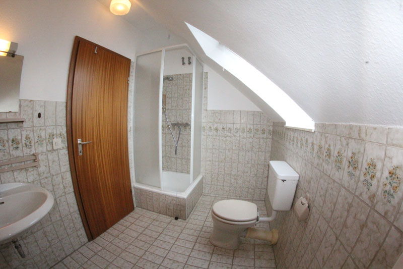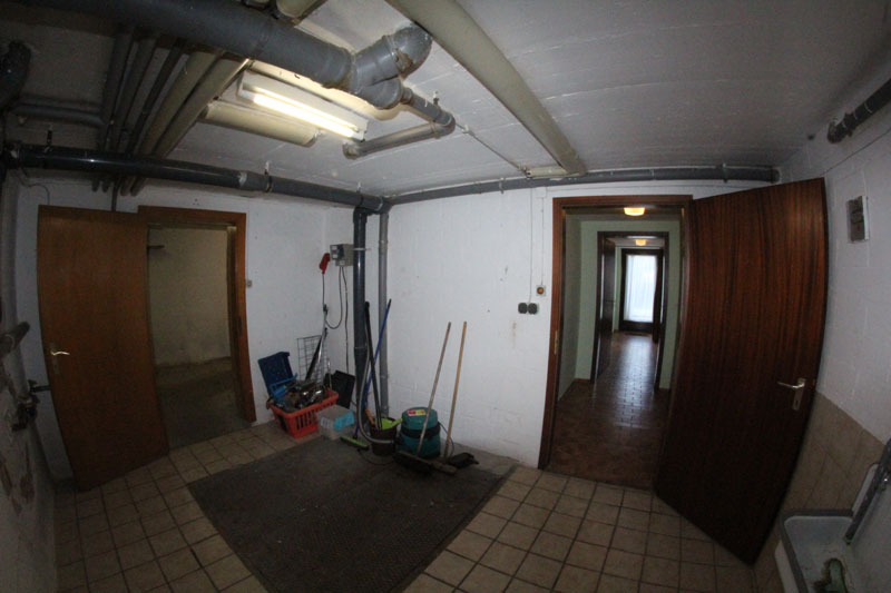 Zu guter Letzt stellt der Keller dann auch noch Teilflächen zur Verfügung, die zu wohnzwecken (Einliegerwohnung) genutzt werden könnten. Wie bereits angesprochen, verfügt das Objekt nämlich auch noch über eine zweite Eingangstür auf der Hausrückseite. Zur Einliegerwohnung würden dann ein Zimmer, ein Duschbad und eine Küche gehören. Ein erwachsenes Kind, hätte hier dann beispielsweise sein eigenes Reich. Weitere Nutzungsmöglichkeiten wie Partykeller oder Saunaraum sind natürlich auch denkbar. Abschließend sind im Keller dann noch zwei weitere Kellerräume, ein Heizungsraum und ein Öllager anzufinden. Im Keller gibt es auch noch einen Kellerschacht, der mit einer Fäkalienhebeanlage ausgestattet ist, die ausschließlich das Schmutzwasser auch dem Keller in die Kanalisation befördert.