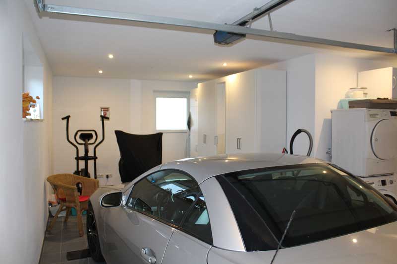 • Garage mit Fenstern und separater Außentür zur Terrasse