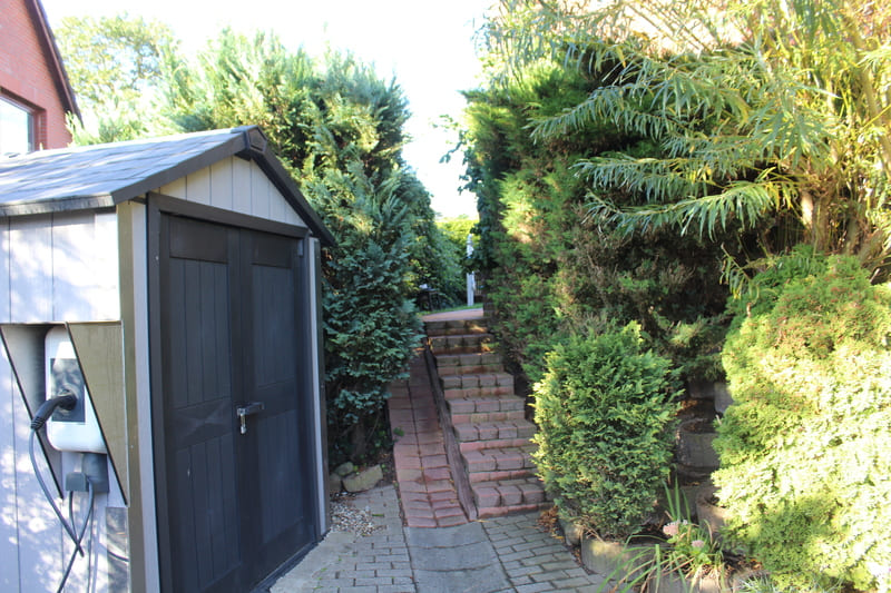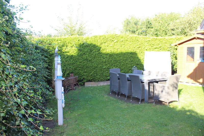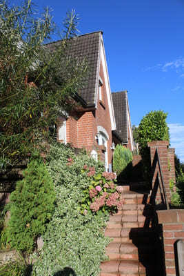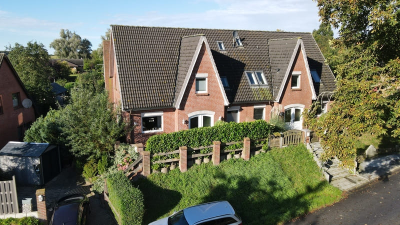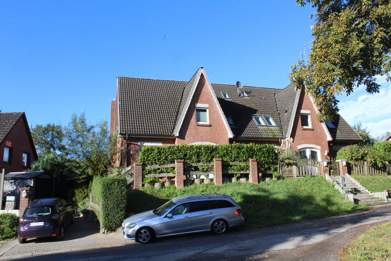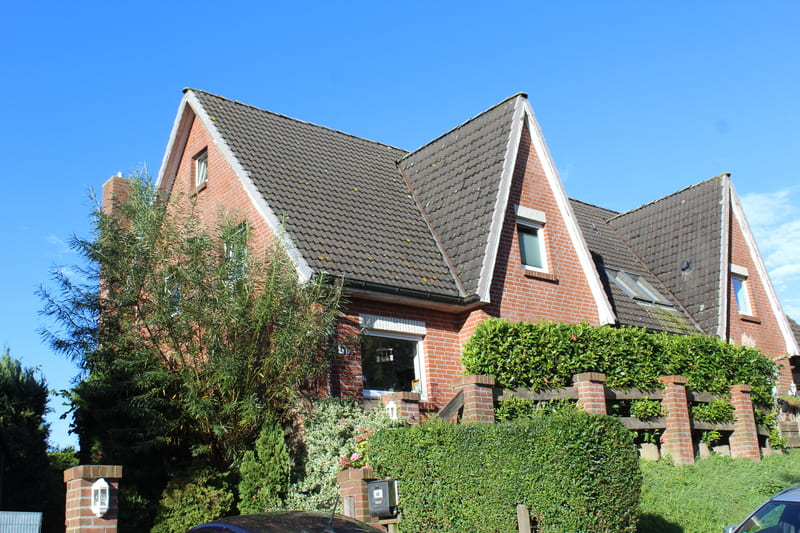 Verkauft werden soll eine Doppelhaushälfte in Tröndel-Emkendorf. Die Doppelhaushälfte steht auf einem 233 m² großen Grundstück und wurde 1998 in massiver Bauweise errichtet. Das Doppelhaus ist mit einem Friesengiebel (Kapitänshaus) und Satteldach ausgestattet. Weiter wurde das Objekt in 1,5 geschossiger Bauweise errichtet und mit einem Verblendmauerwerk versehen. Neben dem Erd- und Dachgeschoss, gibt es zusätzlich noch einen ausgebauten Spitzboden. Das Haus befindet sich in einer Hanglage und verfügt über eine Auffahrt, die gleichzeitig als Stellplatz genutzt werden kann. Im Bereich der Auffahrt ist ein Gartenhaus mit Wall-Box anzufinden. Über die Auffahrt führt ein angrenzender Weg – über eine kleine Terrasse – in den Garten. Hier sind ausreichend Sitzplatzmöglichkeiten und ein Gartenhaus mit Holzunterstand anzufinden. Einen Außenwasserhahn gibt es ebenfalls.