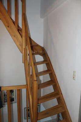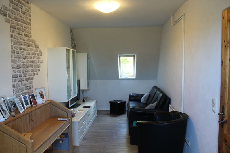 Über eine weitere Holz-Raumspartreppe gelangt man vom Dachgeschoss in den ausgebauten Spitzboden. Hier ist ein großer Raum anzufinden, der aktuell in einem Wohn- und Schlafbereich aufgeteilt ist. Die Nutzungsmöglichkeiten sind natürlich – je nach Bedarf – flexibel. Das Haus befindet sich in einem gepflegten Zustand und ist ohne große Renovierungs- und Modernisierungsarbeiten sofort einzugsbereit nutzbar. Eine Besichtigung lohnt sich ganz bestimmt und ist jederzeit nach Absprache möglich.