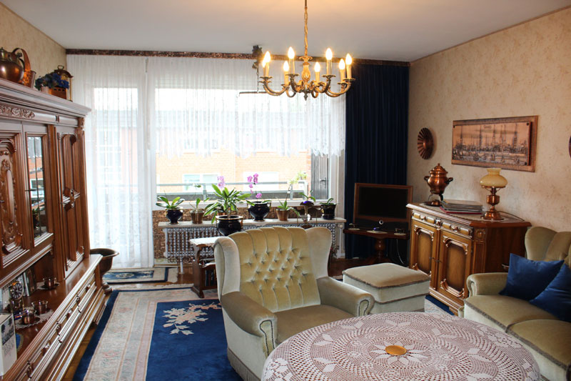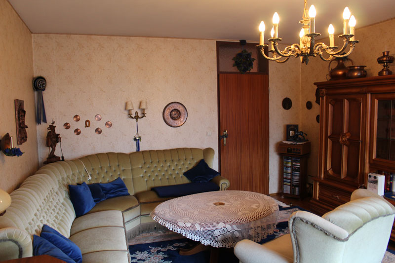 Die angebotene Eigentumswohnung wurde 1971 in massiver Bauweise errichtet. Die Wohnung befindet sich in einem Mehrfamilienhaus mit 8 Wohneinheiten. Das Mehrfamilienhaus verfügt über ein Flachdach und jede Wohnung ist mit einer Loggia ausgestattet. Die Wohnungen verteilen sich über 4 Geschosse. Die zum Verkauf stehende Wohnung befindet sich im Obergeschoss direkt unterm Dach. Die Wohnung besteht aus 3 Zimmern plus Küche und Bad. Ein separates Gäste-WC kommt ebenfalls noch hinzu.