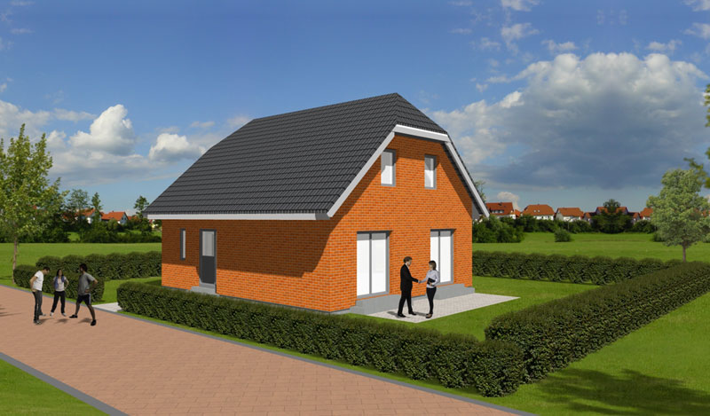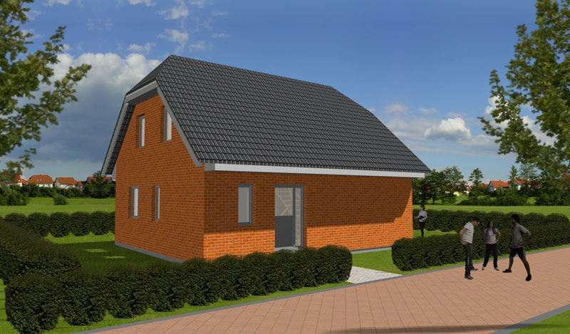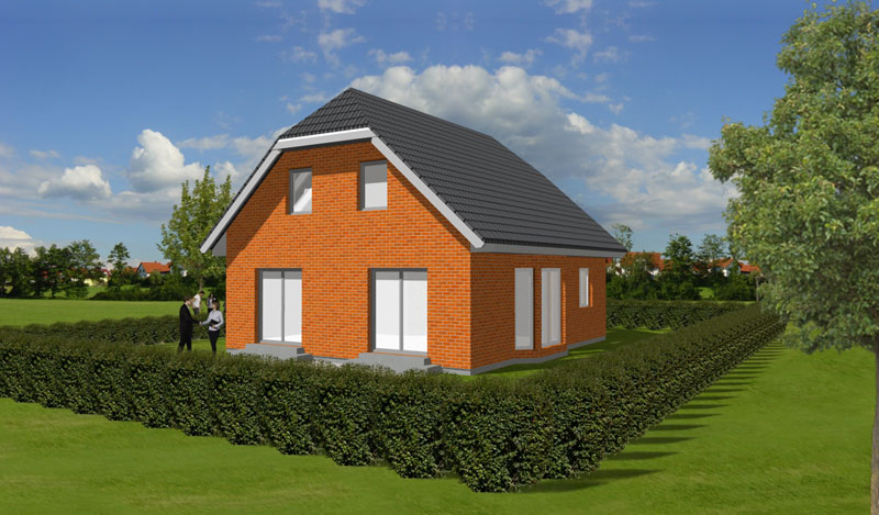 Als Vorschlag haben wir ein Einfamilienhaus im typisch norddeutschen Baustil ausgewählt. Die großzügige Raumaufteilung eignet sich insbesondere für Familien mit Kindern. Im Dachgeschoss ist neben dem Schlafzimmer der Eltern mindestens noch genügend Platz für zwei Kinderzimmer. Der Wohn- und Essbereich kann wahlweise durch eine offene Küche erweitert werden. Unter dem Krüppelwalmdach befindet sich der Spitzboden, der als Ausbaureserve weiteren Platz bietet.