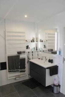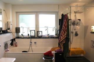 Modernes Bad mit Wanne, Dusche u. Handtuchheizkörper
