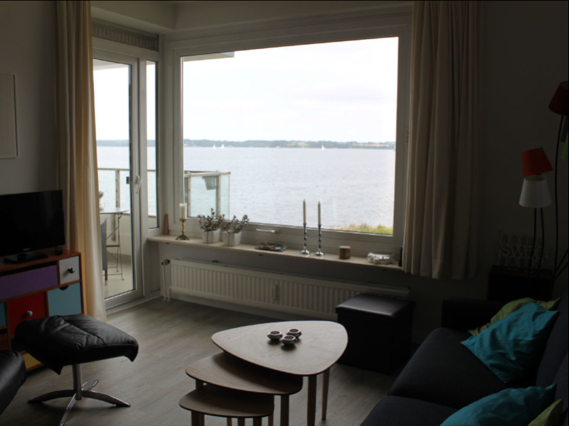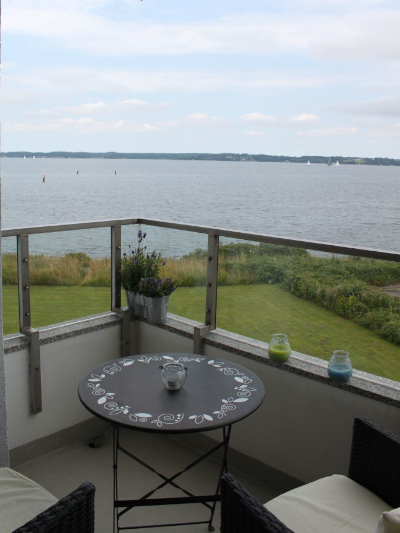 Das Highlight der Wohnung ist eine Loggia, wobei über die Flensburger Förde bis nach Dänemark geblickt werden kann. An Sommertagen kann man hier bis spät in den Abend draußen sitzen und den Sonnenuntergang genießen, wobei auch diverse Schiffe, Segelboote oder Wassersportler gesichtet werden können.