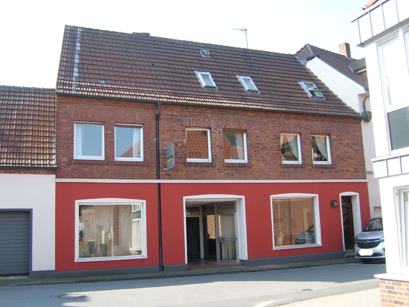 Das zum Verkauf stehende Einfamilienhaus wurde ca. 1950 in massiver Bauweise gebaut. Das Haus grenzt mit den Seiten an die benachbarten Häuser und liegt im Zentrum vom Billerbeck. Es verfügt über zwei Vollgeschosse und ein ausgebautes Dachgeschoss mit großer Gaube im Satteldach. Weiter gibt es auf der Hausrückseite einen überdachten Balkon. Ferner verfügt es über zwei Hauseingänge und über eine Wohn- und Nutzfläche von rund 193 m².