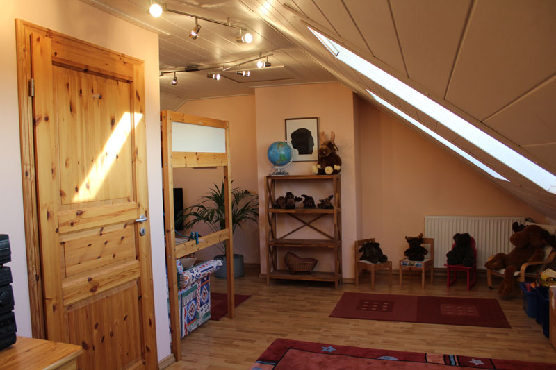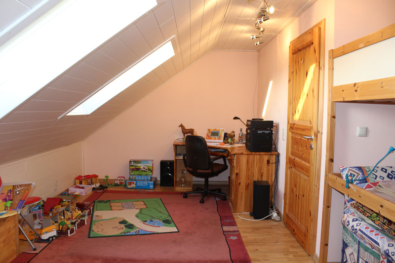 Im 1. Obergeschoss befinden sich neben dem Bad drei weitere Räume, die sowohl als Kinder- wie auch als Schlafzimmer genutzt werden können. Zum Vollbad gehören eine Dusche und Badewanne. Wie bereits angesprochen ist auch dieses Geschoss ein Vollgeschoss, so dass lästige Dachschrägen, die das Aufstellen von Schränken verhindern, nicht anzufinden sind. Die Räume haben eine optimale Raumaufteilung und sind von ca. 9 bis zu fast 14 m² groß. Vom Obergeschoss gelangt man dann ins nachträglich ausgebaute Dachgeschoss. Dieser Bereich kann als zusätzliches Schlaf- und/oder Kinderzimmer genutzt werden. Aufgrund seiner großzügigen Wohnfläche bietet das Haus auch genügend Platz für Familien mit drei Kindern. Eine Besichtigung lohnt sich ganz bestimmt und ist jederzeit nach Absprache möglich.