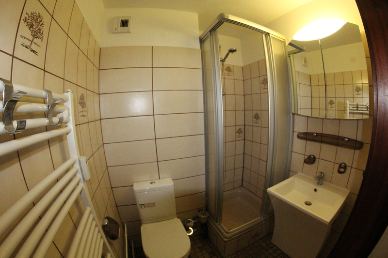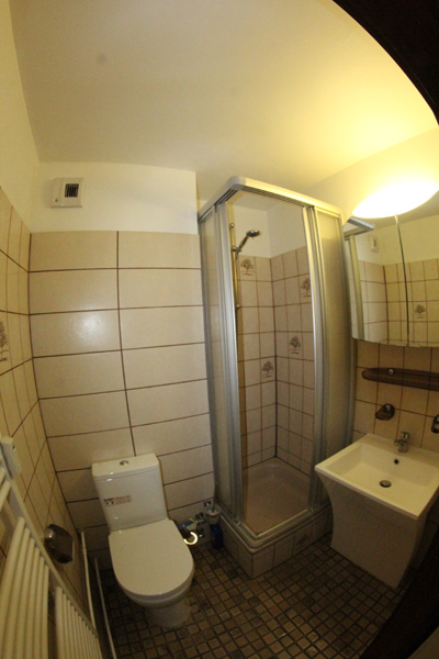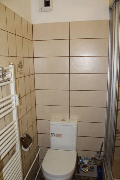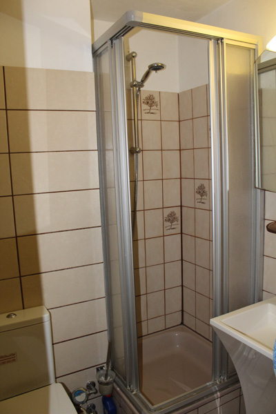 Die Wohnung selbst verfügt über eine Wohnfläche von ca. 43 m². Zur Wohnung gehören ein Flur, ein Badezimmer, ein offener Wohn- und Essbereich, ein Schlafzimmer sowie die Loggia. Nach dem Betreten der Wohnung befindet man sich auf dem recht großen Flur, der ausreichend Platz für einen großen Schrank zur Verfügung stellt. Hier können dann Kleidungsstücke sowie sonstige Reiseutensilien problemlos untergebracht werden. Am Kopfende des Flures befindet sich das Badezimmer. Dieses ist mit einer Dusche, einen Waschplatz, einer Toilette und einer Handtuchheizung ausgestattet. Die Wände des Badezimmers wurden fast wand hoch (Bis zur Höhe der Dusche) gefliest.