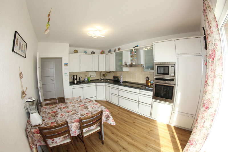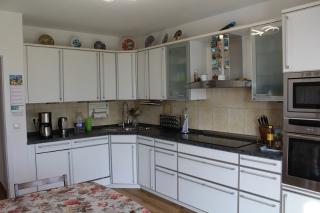 - Große Küche mit Sitzmöglichkeiten und Zugang zur Terrasse