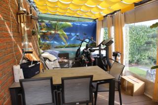 Die Außenanlagen überzeugen durch eine hochwertige und durchdachte Gestaltung. Der Garten vereint Funktionalität und Ästhetik und bietet mit Gartenhaus, Gewächshaus, Unterstand und Holzschuppen vielfältige Nutzungsmöglichkeiten. Ein liebevoll angelegter Bereich mit Kunstrasen, umrahmt von Palmen, schafft eine außergewöhnliche Wohlfühlatmosphäre. Zwei großzügige Terrassen erweitern den Wohnraum ins Freie. Eine davon wurde 2018 mit einem Glasdach vollständig überdacht und mit flexiblen Seitenelementen versehen, sodass sie auch an kühleren Tagen genutzt werden kann. Die zweite Terrasse befindet sich direkt hinter dem Haus und ist teilweise überdacht – ideal für gesellige Stunden im Freien.